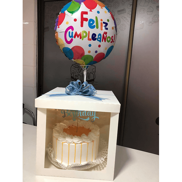 Caja para torta con visor, no incluye globo ni cinta solo es de muestra como puedes decorar